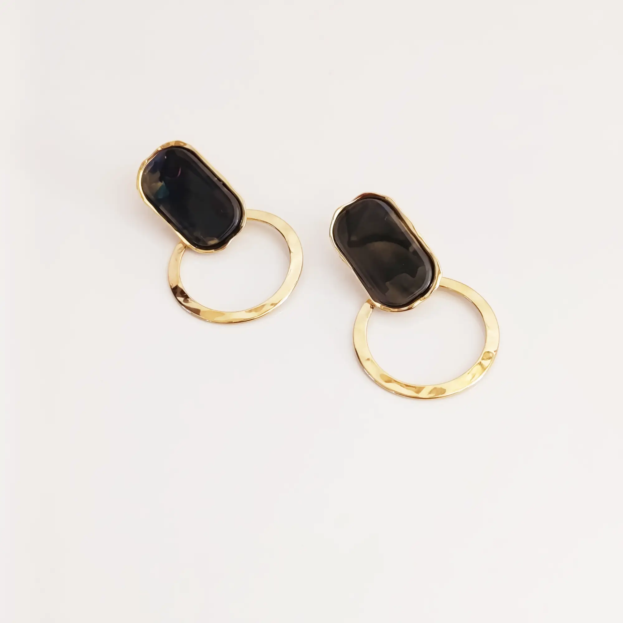 Ατσάλινα σκουλαρίκια με πέτρες σε χρώμα χρυσό και μαύρο.