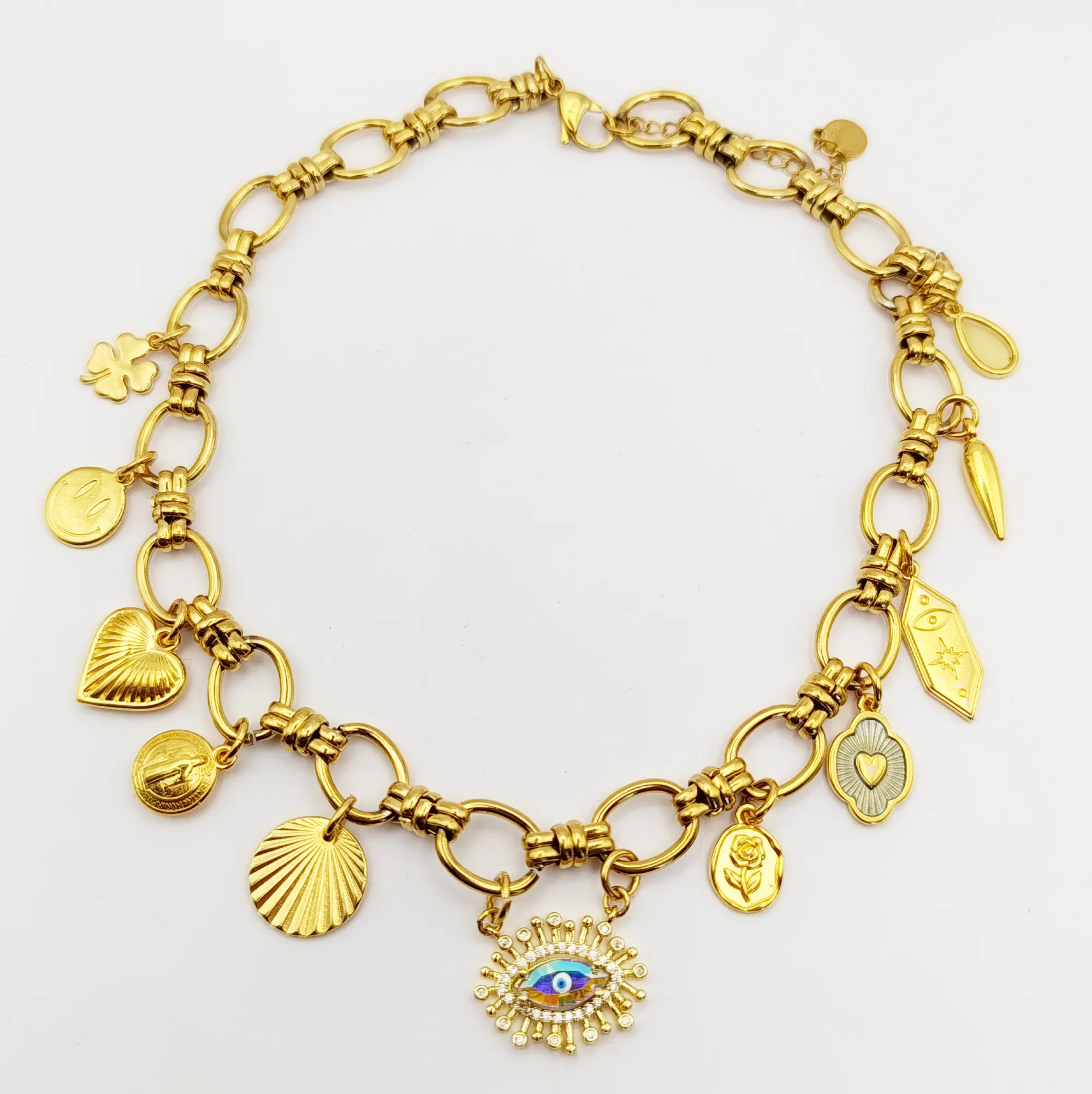 Ατσάλινο χειροποίητο κολιέ με κρεμαστά στοιχεία σε χρώμα χρυσό.