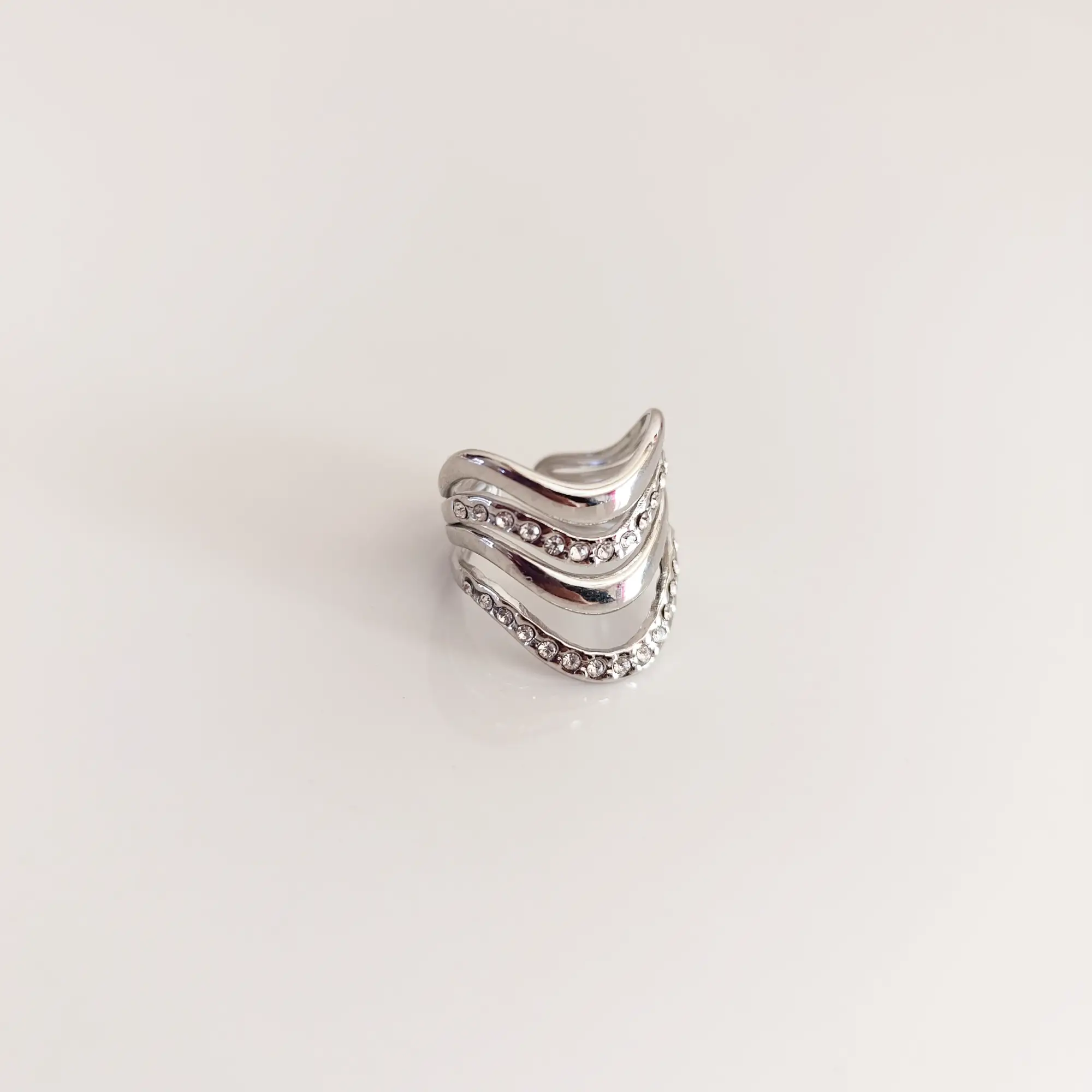 Ατσάλινο δαχτυλίδι με ζιρκόν σε χρώμα ασημί.