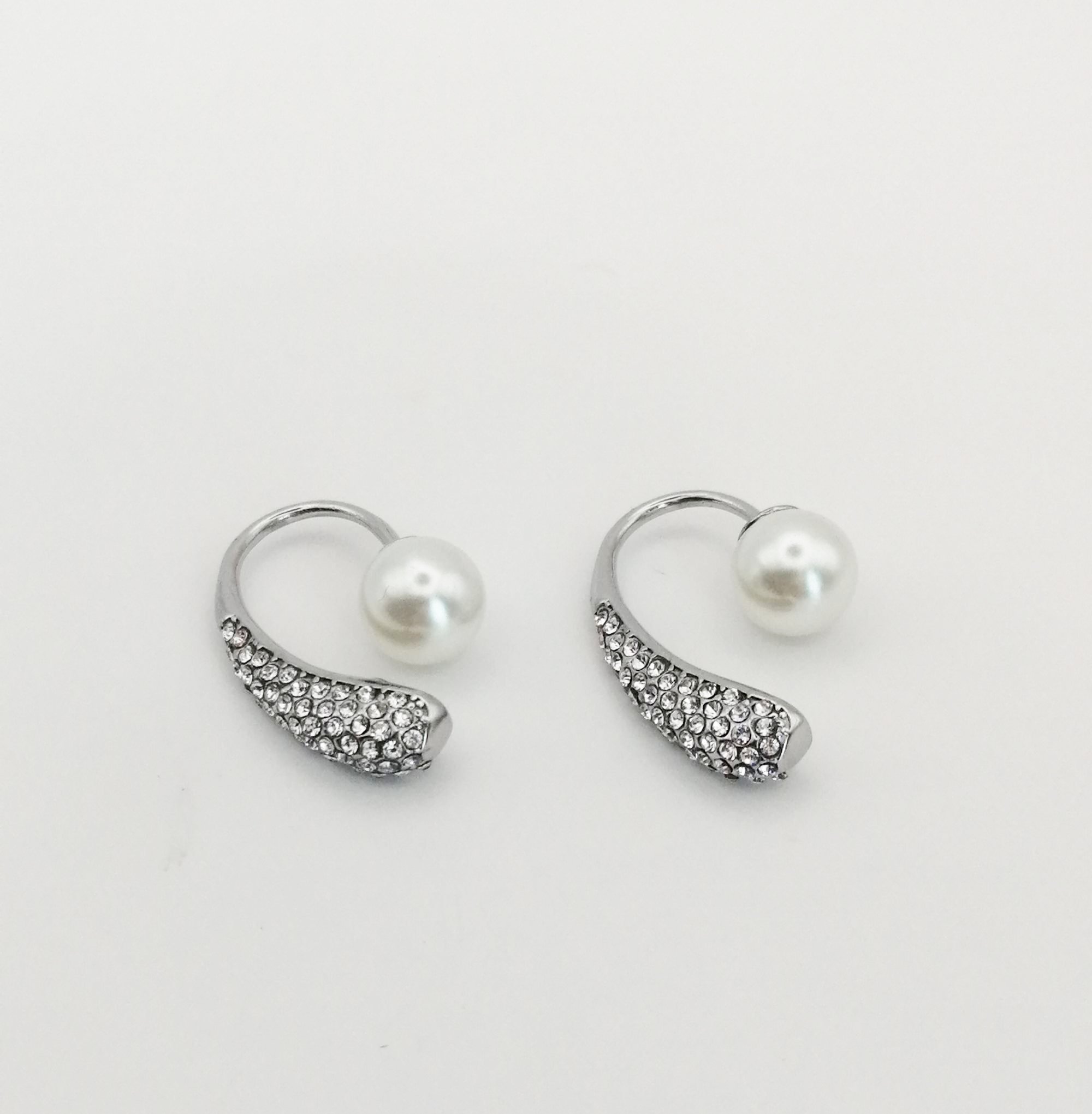 Ατσάλινα σκουλαρίκια με  στρας σε χρώμα ασημί.