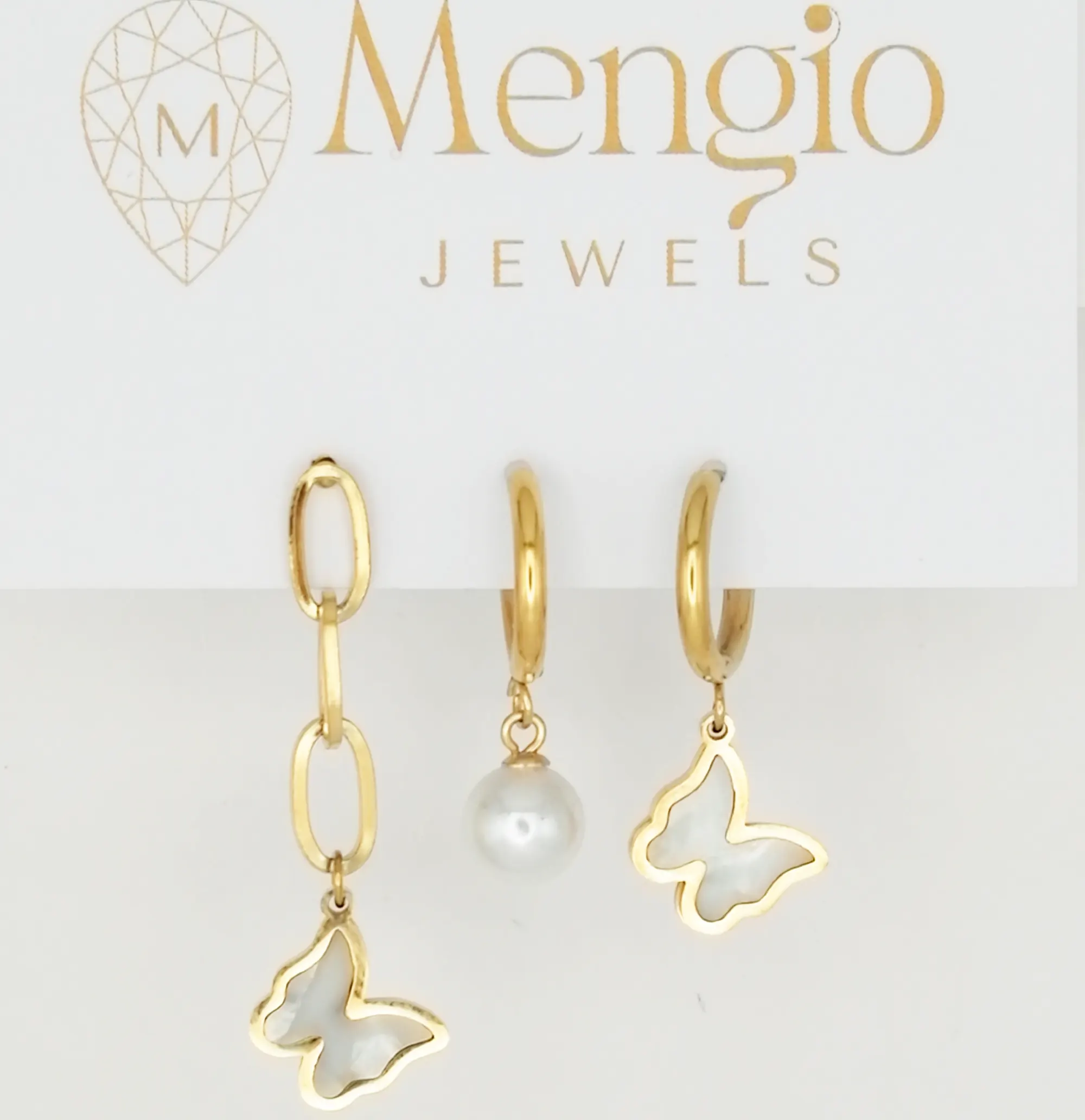 Aτσάλινα σκουλαρίκια με κρεμαστά στοιχεία σε τριπλέτα σε χρώμα χρυσό.