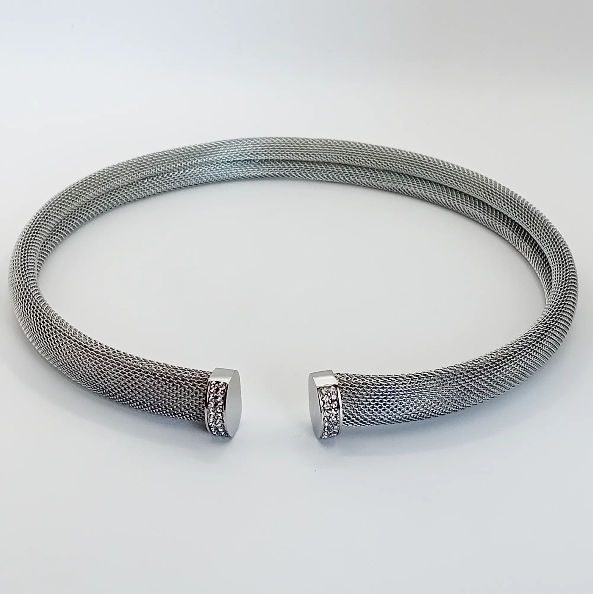 Ατσάλινο chocker με στρας σε χρώμα ασημί.